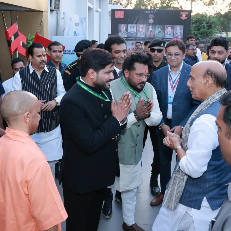 At 5:45 PM, the Hon’ble Defence Minister Shri Rajnath Singh arrived and was received by Shri Yogi Adityanath, along with senior dignitaries, including Mr. Ajay Iyer (Sr. Vice President, TOI), the Army Commander, and Hemant & Shishir Dixit of the Centurion Foundation.